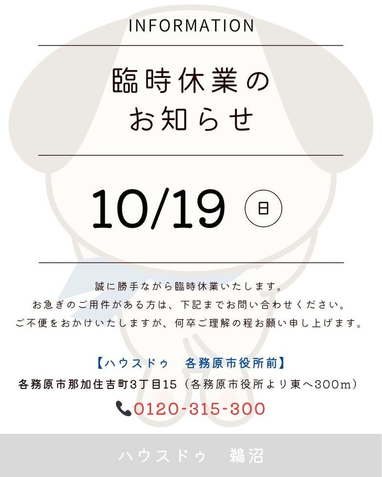 休業期間:10月19日(日)終日