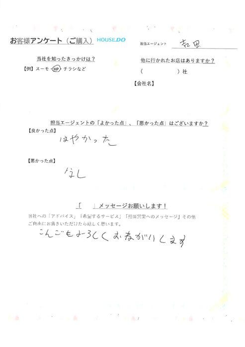 I様 この度は、ご成約おめでとうございます! また、当店をお選び頂きましてありがとうございます! 何かご不安な事がございましたら、お気軽にご連絡ください。 今後とも、よろしくお願いします!