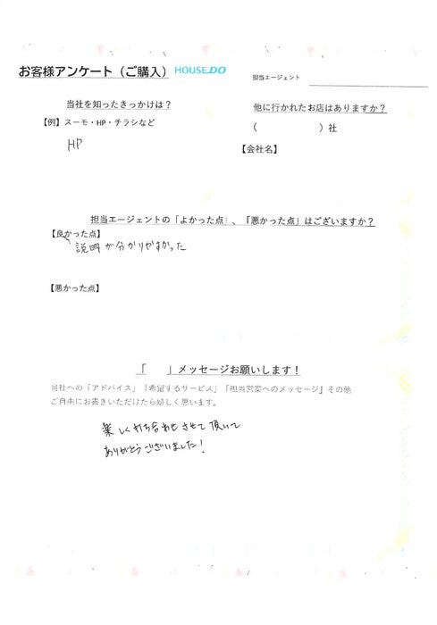 H様 この度は、ご成約おめでとうございます。 また、当店をお選び頂きましてありがとうございます! 何かご不安なことがございましたら、お気軽にご連絡ください。 今後とも、よろしくお願いいたします!